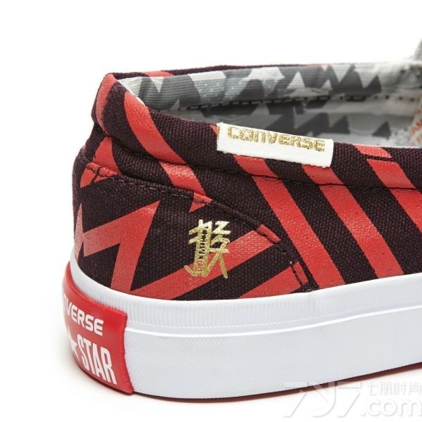 贺岁系列另外也推出帆布面料款,灵感取自金箍棒取经之路,此外后跟贴标及外底皆采用红色,印衬传统新年喜庆气氛,同时,在鞋型的后跟外侧部位,左右脚分别有“猴”字烫金印点缀,通过细节展示猴年贺岁系列的特别之处。