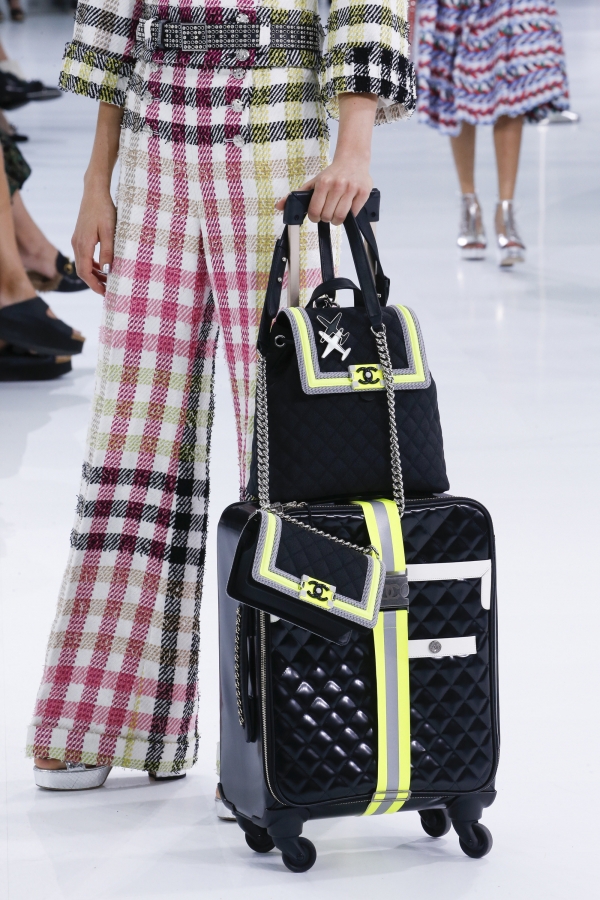 这么多年来香奈儿都秉承着传统不可抛,经典的小方格和编织的面料。说老佛爷毒不是没有原因的,经典款人人都爱,比起常年吃剩饭。佛爷选择了更为保守的时尚元素添加,你说我们不够艳丽打眼就亮给你看。荧光黄的条纹,远远的看上去像防撞的反光条一般,俗然而就是打眼的很。