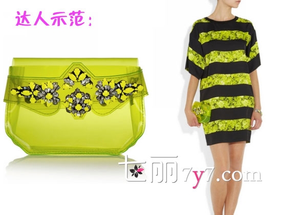 这款荧光色的PVC手拿包做工很精致,点缀的是该品牌标志性的透明和荧光色水晶,可以搭配同色系的连衣裙,能够彰显充满当代风情的魅力,撞上肩带又能背在肩膀上,更加轻巧方便哦。