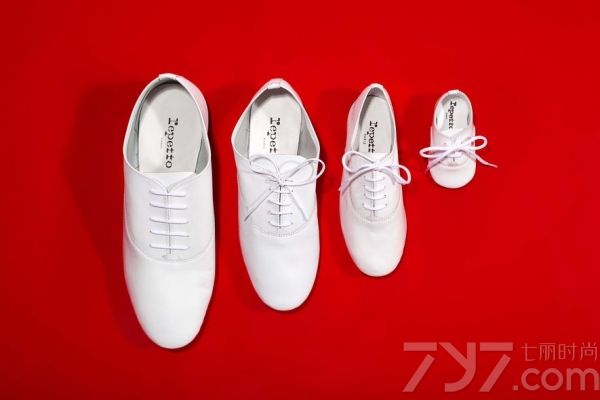 爸妈可与BB齐穿上白色oxford 平底鞋,凑合成家庭装!