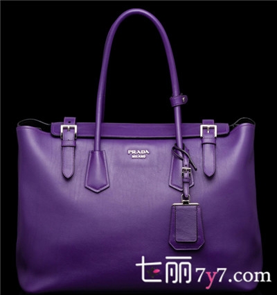 普拉达Saffiano搭扣手提包包-紫色