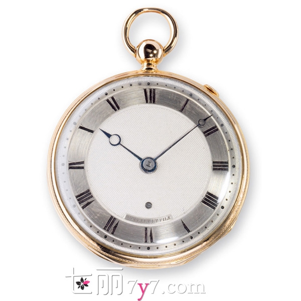 金质手工镌刻表壳,银质手工镌刻面盘,Breguet蓝钢指针,金质外壳,红宝石柱轮擒纵机构,直径35毫米。于1817年8月1日以 3,000法郎售予威灵顿公爵夫人。