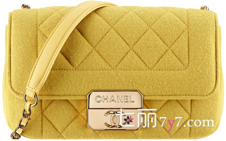 香奈儿(Chanel)2014秋冬季前系列黄色平纹布翻盖包