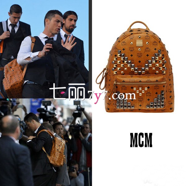 时尚点评:MCM背包不局限于亚洲,葡萄牙足球明星C罗在机场也经常背着这款MCM铆钉背包,与王源不同的是,C罗选择是同款黄棕色的双肩包,这种颜色更衬托他的气质。C罗这种背包混搭续西装的穿衣方式,还真的很新潮。