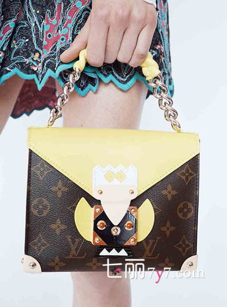 路易·威登(LouisVuitton)Pochette面具包包于2015年早春系列被推出,包身经典老花图案与乳黄色包盖拼接在一起,抽象面具扣锁彰显出独特感与个性美!