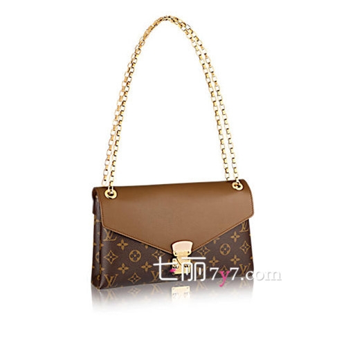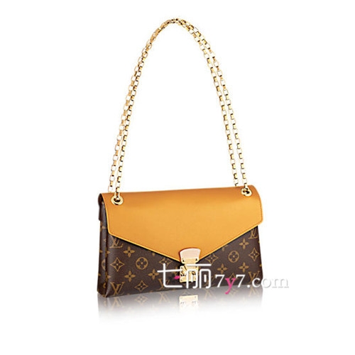 路易·威登(LouisVuitton)本季全新包包-Pallas系列包包,是一款翻盖包,配以闪亮的金色金属链条作为肩带。Monogram经典老花图案皮革包身,搭配五颜六色的亮色光滑皮革包盖,个性又抢眼!