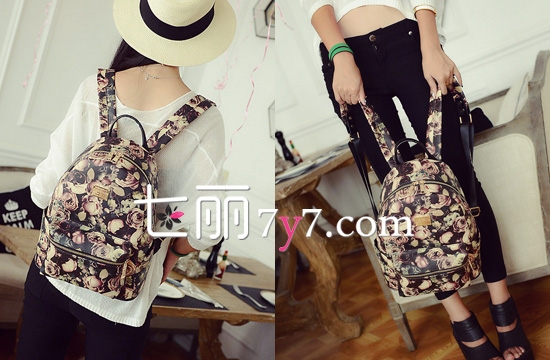 时尚点评:浪漫的玫瑰花图案,给韩版双肩包设计增添一抹靓丽的色彩,背上上身搭配衣服显得特别嫩,出去旅游或者逛街,随意的搭配鸭舌帽和一件白色小T恤,美腻极了。