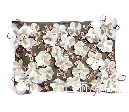 该款ASOS手拿包,拉链开合,皮革面料上铺满了3D立体串珠花朵,无处不散发着甜美与浪漫。由于该款包包的惊人销售量,售价由之前的67.71美元降到了32.89美元。