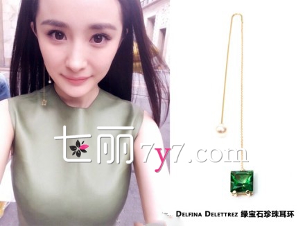 杨幂穿着显身材,配饰上的装饰也精致,耳环吊坠虽然看上去很单调,但是很奢华,是一种简单美,感觉杨幂在经历美满婚姻,生儿育女后人生得到了升华。而这款耳环吊坠是Delfina Delettrez珍珠绿宝石耳环。