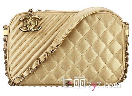 2015早春季,香奈儿(Chanel)推出了多款绚丽夺目的土豪金色包包,今天小编要给大家介绍的是香奈儿2015早春系列里的一款金色相机包包,小巧不失奢华,值得您拥有!