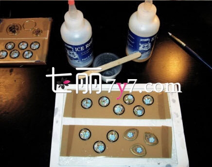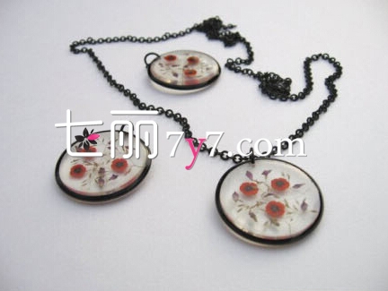 step3:然后将树脂倒入在上面,弄出凸出来的形状,等待它彻底干掉以后,在安在准备好的金属项链成品上,DIY自制树脂项链就完成了。很简单吧!你学会了吗?