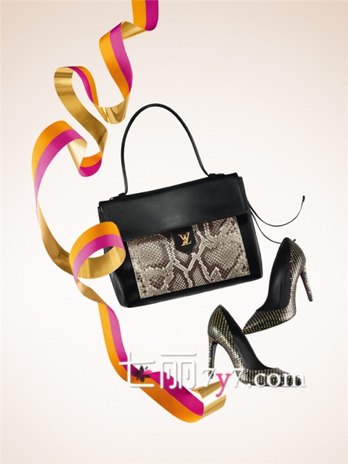 路易·威登(Louis Vuitton)黑+蛇纹Lockme包包和Midnight Sun高跟鞋