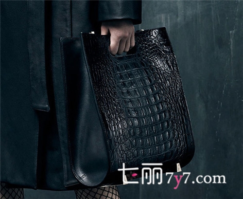 亚历山大·王2015秋季系列包包广告大片-黑色鳄鱼纹手提包