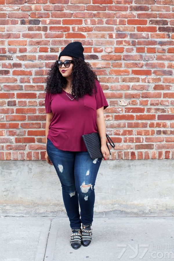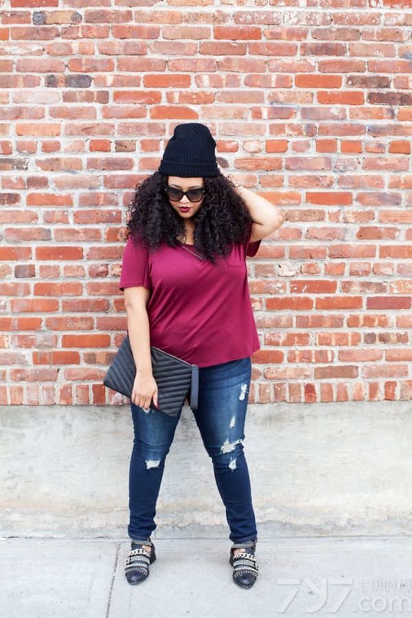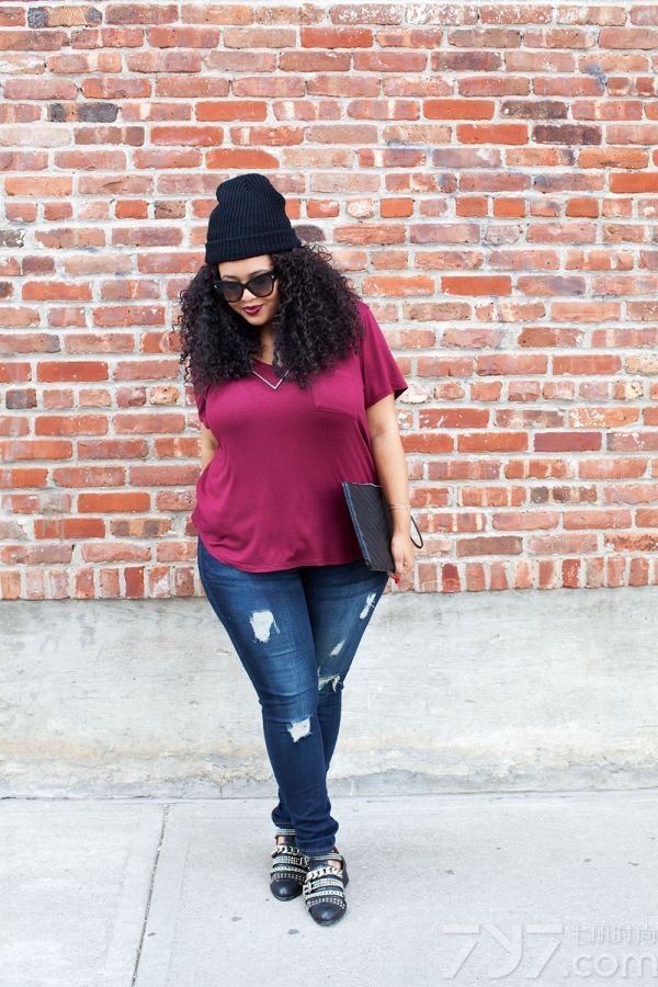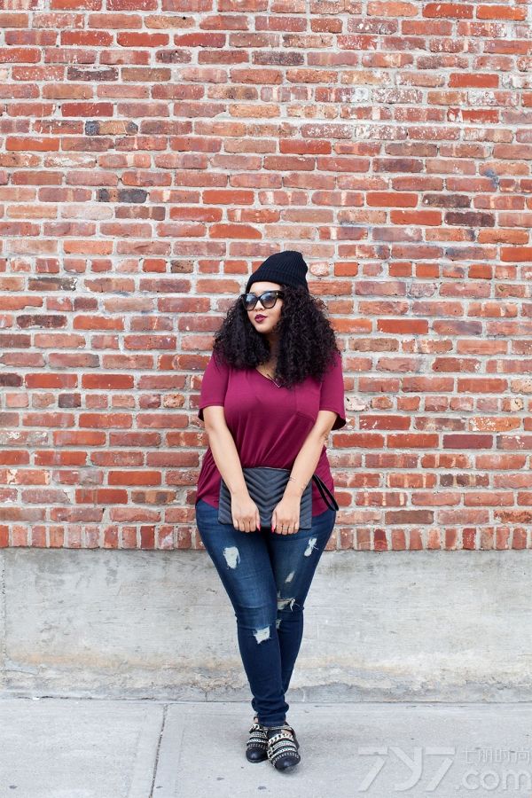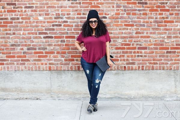 Gabi Gregg:毛线帽与破洞牛仔裤凹出街头范