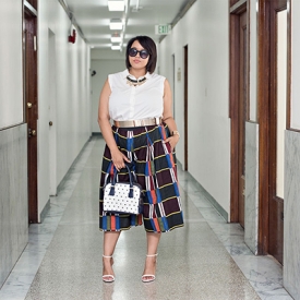 Gabi Gregg:蓝色印花裙与摇曳的身姿