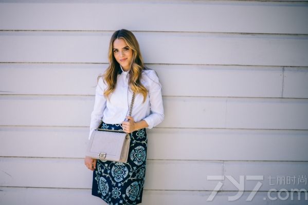 Gabi Gregg:蓝色印花裙与摇曳的身姿