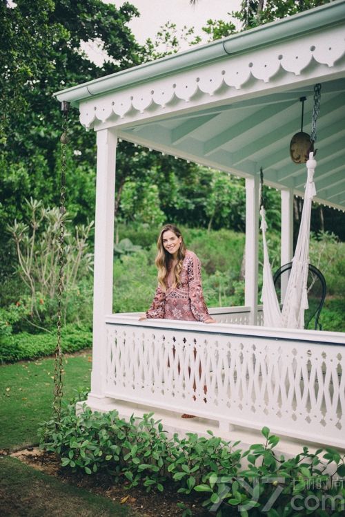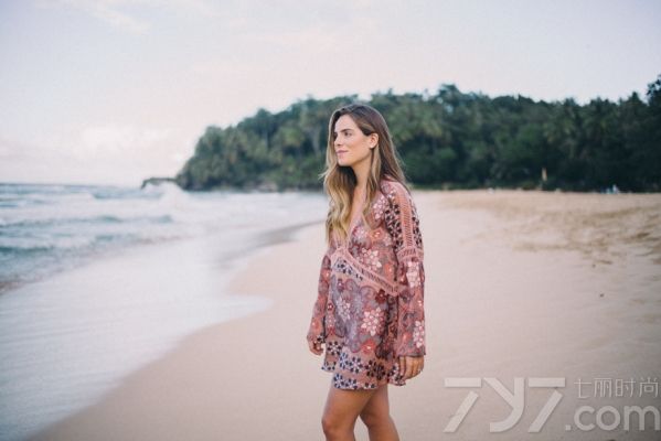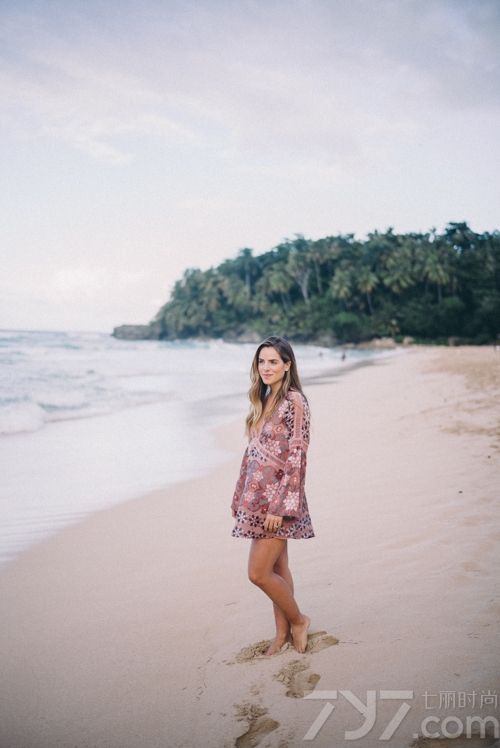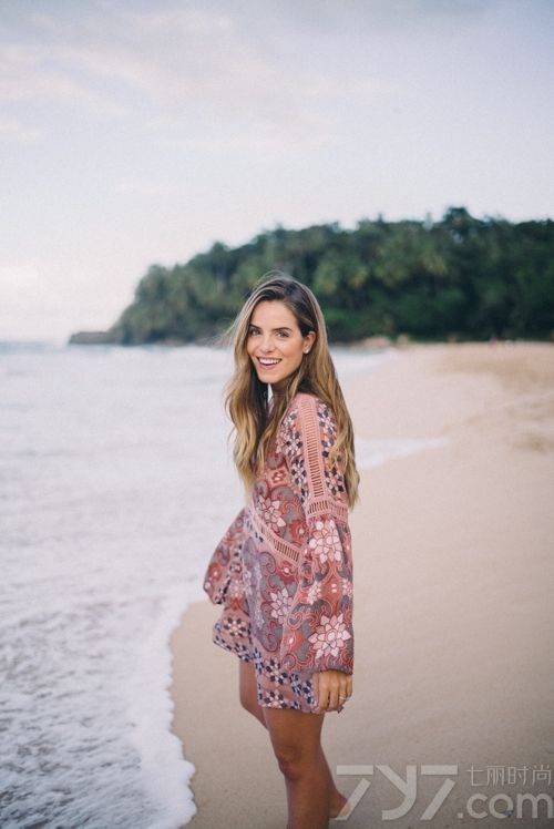 Julia Engel:度假风情深V沙滩裙