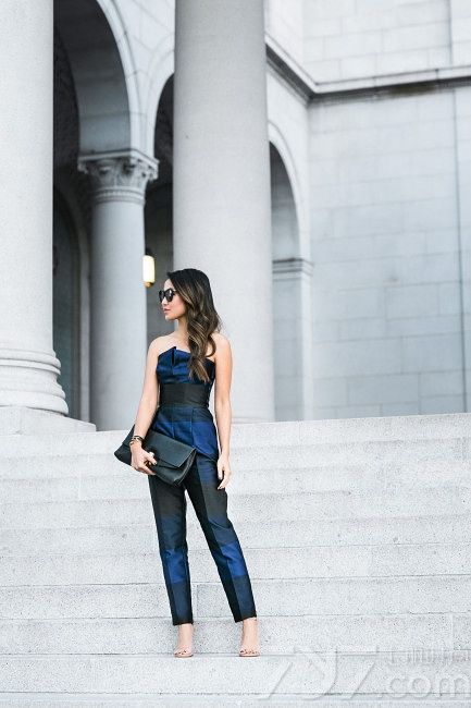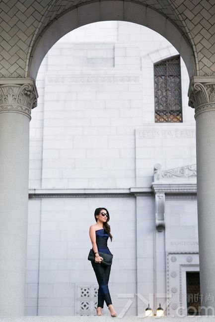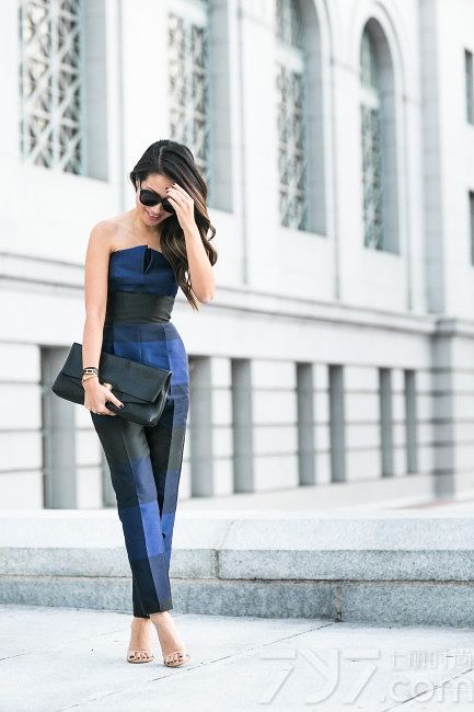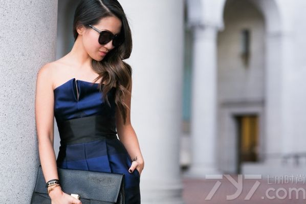 Wendy Nguyen:蓝色抹胸连身裤缔造小腰精