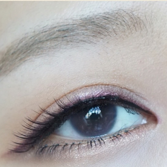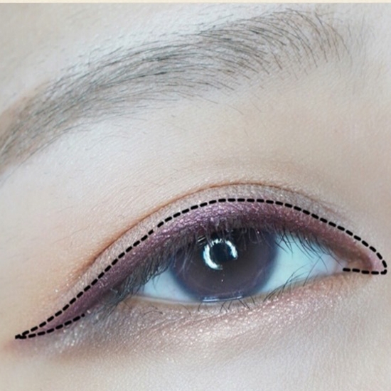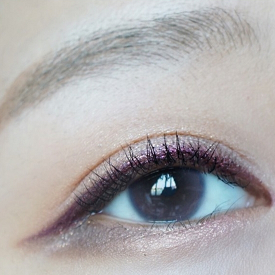 第十一步:酒红色眼线笔画眼线,拉长眼型,瞳孔上方眼线比两边粗,横向纵向放大眼睛。