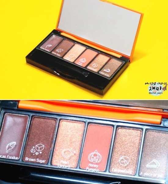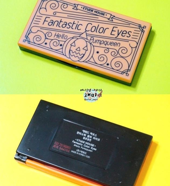 整个妆容使用的是ETUDE HOUSE伊蒂之屋专门针对万圣节出的一个眼影色,下面我们就先来着重的介绍一下这款眼影色盘吧,售价14000韩币的6色眼影盘,内附双头眼影刷一个。
