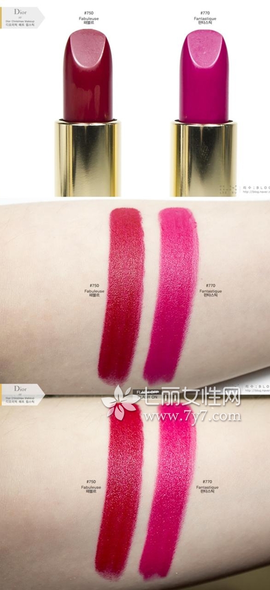 两款红色#750和紫红#770试色,质地醇厚,饱和度高,滋润度也不差。