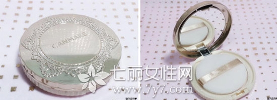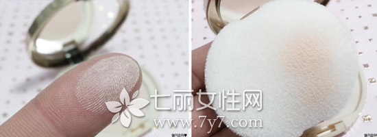用手指抹粉饼,感觉粉质细腻;用附赠的粉扑蘸取,也容易取粉。