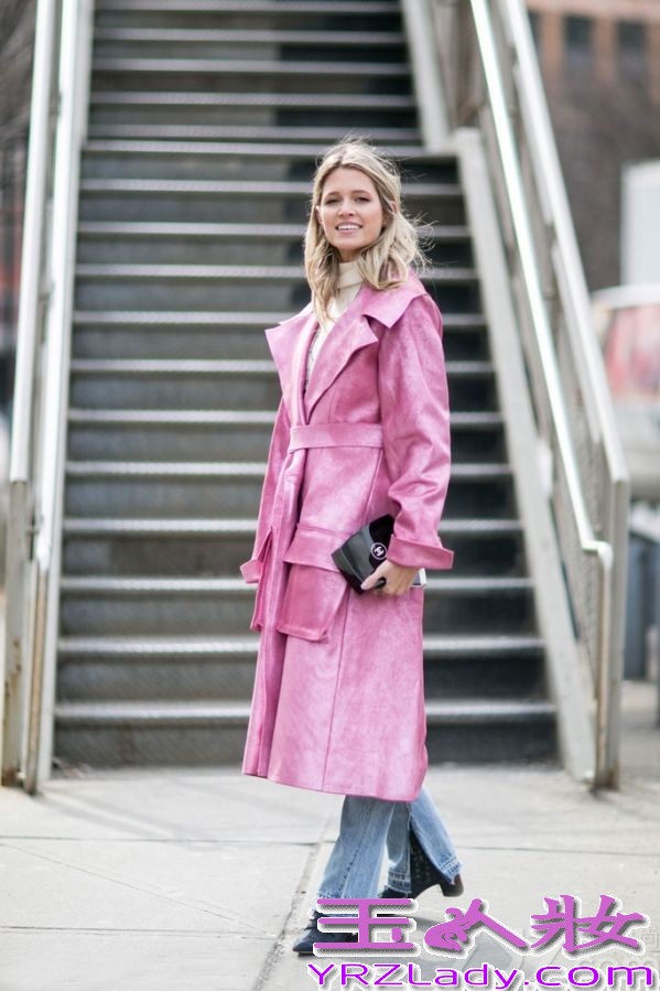 粉红色是2016年的流行色系,所以遇到粉红风衣就赶快剁手吧!与浅色单品的组合,减龄又吸睛,简直嫩到不行。