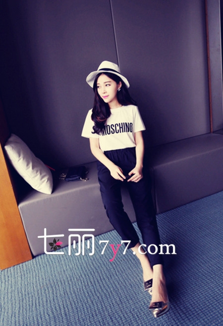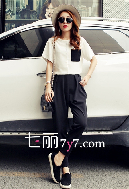 LOOK 6:哈伦裤+拼色T恤+乐福鞋