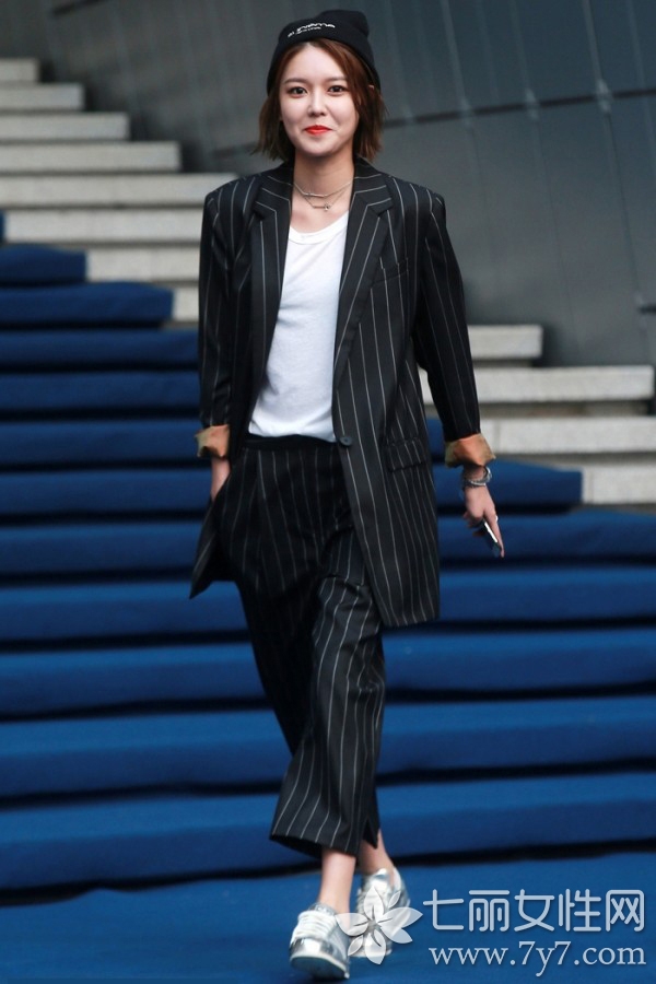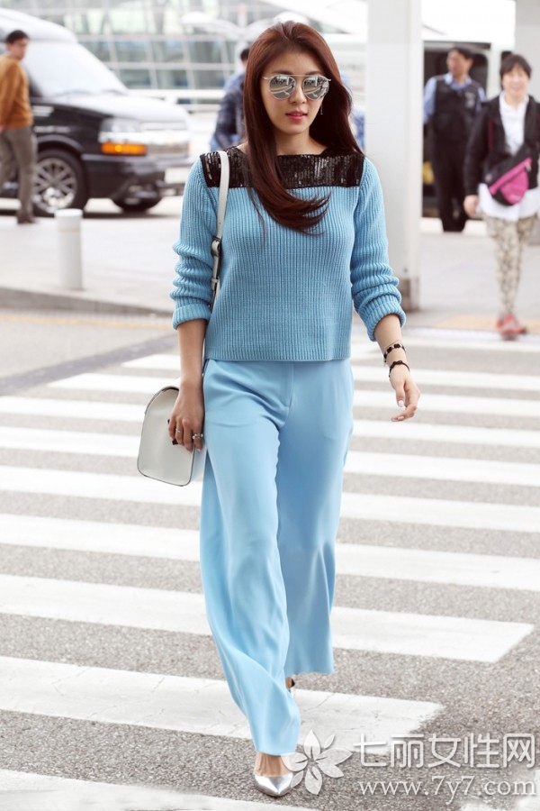 很多亚洲女生因为自己身高不够而不敢穿阔腿裤,其实不用担心。你们可以向韩国的妹子们学习,裤子不要太长九分裤最佳可以露出一截脚踝再配上一双高跟鞋。这样既不会显得拖沓,还能让你拥有大长腿。