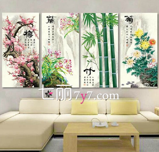 这四种花象征着四季,也是中国文人寓意的“四君子”,如若是书香门第,这样的一副刺绣一定要有,挂于客厅彰显气质。另外还能舒展客厅空间的气,调和人温润如玉的性格。