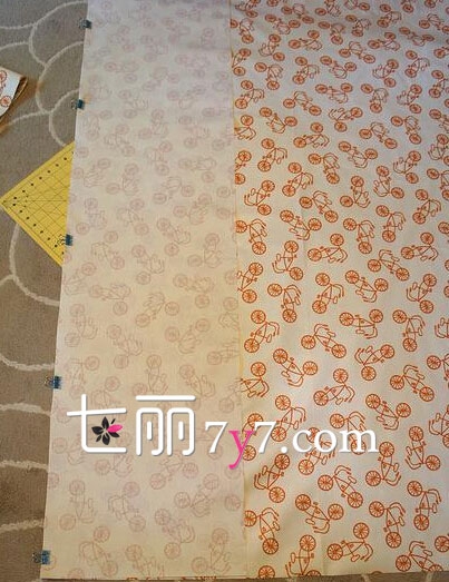 步骤2:之后将浴帘顶部进行下折2CM,用低温熨烫,在浴帘和熨斗间垫一层布避免损坏防水层,再向下折10cm,同上熨烫。之后再进行缝合起来。同时浴帘的两边也要在3CM处进行打洞,中间部分建议根据计算出来的长度平均打洞,再装上环片。