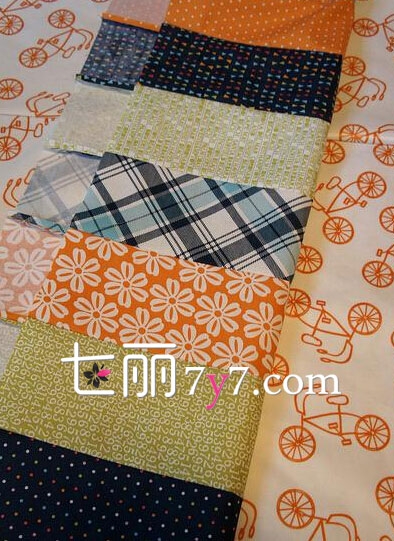 步骤1:将防水布剪成2片,每片长162cm。将其中一条的宽幅边剪成106cm,将另外一条从宽幅边剪成2片,每片宽38cm,长162cm,将此三块布料沿长边拼接起来,106cm宽的放在中间,38cm宽的在两边。注意在缝合时,不要拉伸或在防水布正面熨烫,从背面压平。因为防水布不起毛边,所以两侧不用再包边。