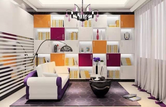 利用客厅中的一整面墙打造一个入墙书柜,节省空间,同时被书包围的客厅很有氛围。