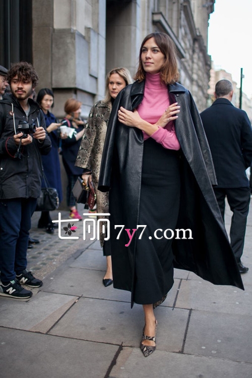 穿着长款皮衣,走在街头十分拉风不说尽显酷感,内搭粉色红色衬衫,点亮整体色调不显暗沉,下身配长裙,彰显女性优雅魅力,这身装扮不仅酷感十足、女人味一丝与不减。