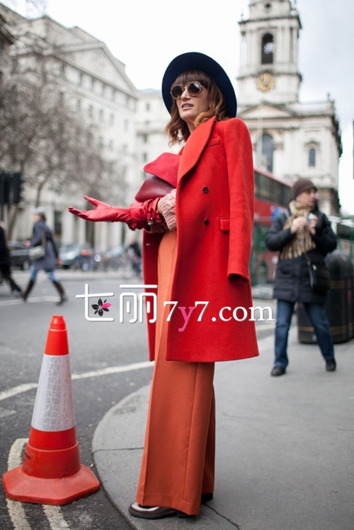 亮色拥于一身,走在人群里一眼就能被吸引住他们目光成为焦点,大衣款款而落,张扬着大衣的经典、女性典雅魅力,搭配橙色宽松裤子,不臃肿反正衬托出随性美,配上手提与包包,尽显名媛贵妇风尚,非常适合知性女性的搭配。