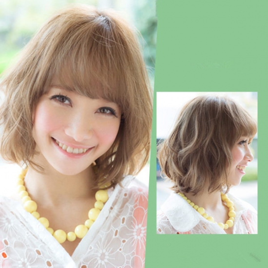 时尚看点:这款短发梨花头最显女生时尚甜美气质,搭配一款较为厚重的齐刘海,瞬间让萌值倍增,烫得小卷的发尾衬托着好看的脸型,既瘦脸又可爱。