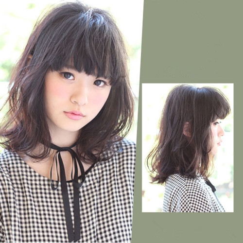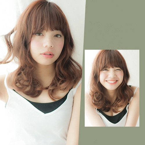 时尚看点:这款齐刘海中卷发散发出浓厚的甜美气息,偏厚的齐刘海遮到眉毛,可以倍增几分可爱范儿,而那紧贴两颊的烫卷头发更是唯美又修颜mm的圆脸脸型,加上吸眼的棕色染发后就更加的时尚好看了。