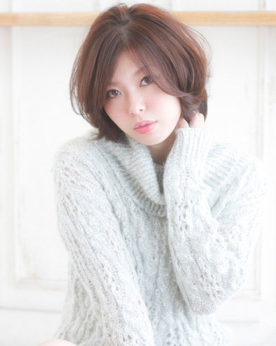 时尚看点:蓬松设计的这款波波头短发让头型尽显丰富饱满,另外还利用了外翘的长刘海让脸型变得更纤瘦有魅力,加上时尚的浅红棕色染发就更是吸眼十足了。