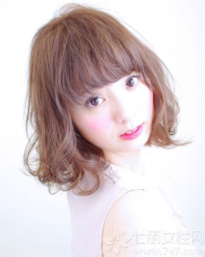 这一款短发梨花头会比较适合发量较少的mm们,采用烫卷与蓬松感的打造来让头型丰富饱满,此外还可以对脸型起到一定的修颜效果,而那浅棕色的染发倍添时尚风味不说更显妹子嫩白好肌肤。