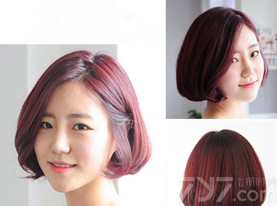 发型点评:酒红色的这一款韩式短发让人看起来十分具有潮感,搭配四六分的刘海可以起到收小面部轮廓的作用,加上内扣设计的厚重发尾就更是时尚好看了。