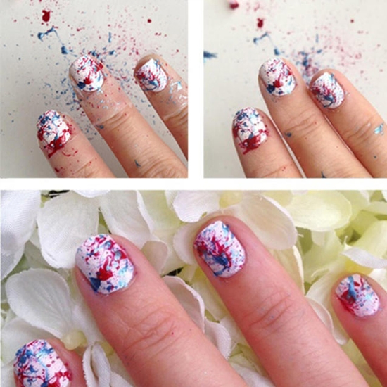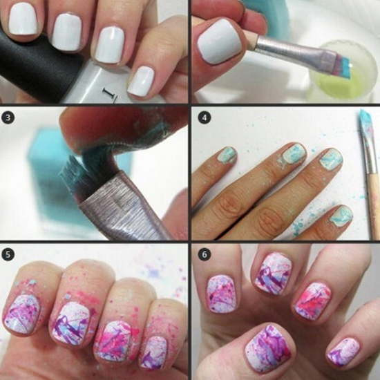 这款指甲比较适合懒人、手残党来做,因为它就是没有在好好画,而是在玩,是把短指甲玩出了酷炫的感觉!涂上一款自己喜欢的底色,在上面随意溅上好看的色彩,前提一定是要色彩搭配的好看,这种混搭出来的效果,个性十足,类似街头涂鸦风格!也很适合玩朋克风、街头风的人。通过这样的方式,你也可以延伸出很多类似的图案画法,自己可以多做尝试。最后会给大家举个栗子~~