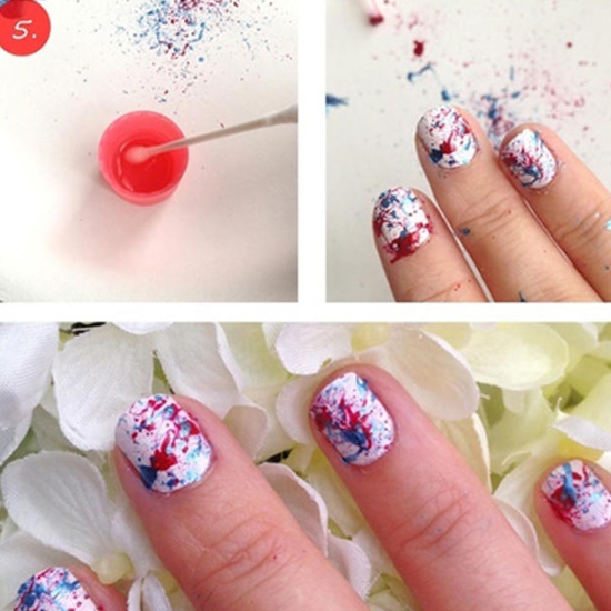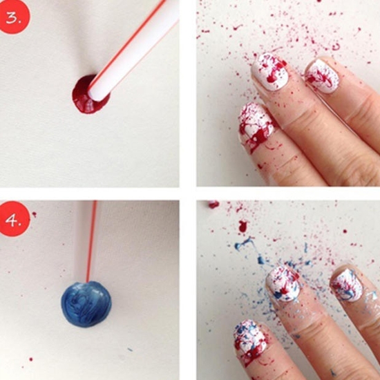 STEP3:倒一滴甲油在纸上,用吸管一头蘸取甲油,然后吹在指甲上。