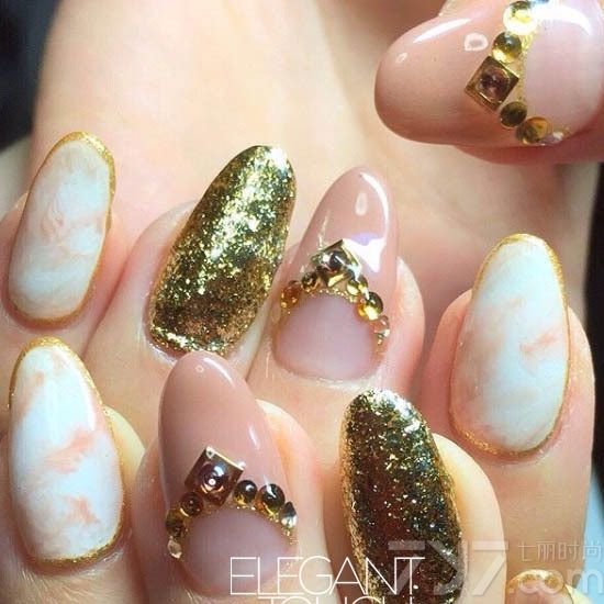 金色美甲图片花样,金色指甲图片,金色配搭指甲图片