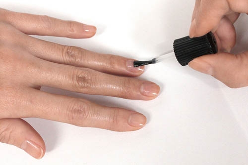 STEP 1:首先,给每个指甲上一层透明甲油,对指甲起到一个保护作用。