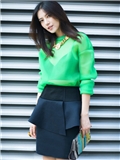 何穗最新街拍,灰色毛衣+墨绿色光泽感半裙,文艺慵懒,少女感十足。马海毛毛衣来自H&M,手提包和粉色毛拖鞋均来自Gucci,半裙来自Tibi 2016