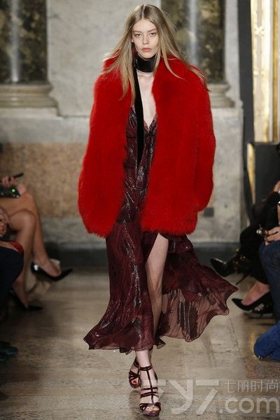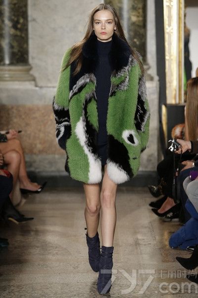 MSGM用大胆的拼色处理,为一件及踝的皮草赋予街头风的张力;versace的明黄色皮草本身就是一剂维他命,立刻摆脱冬日的晦暗;Trussardi 的墨绿色皮草拥有一种哥特式的力量感,而Dior的绿皮草则更加华美。2015年冬季,皮草的搭配也不再拘泥于一种形式,Just Cavalli和Matthew Williamson秀场上,模特们穿着长连衣裙和皮草,像从《几近成名》中走出来的摇滚乐手女友;Max Mara似裸身裹着皮草的穿法让人们想起性感的玛丽莲·梦露,此外你还可以像Dolce&Gabbana用复古的A字裙搭配H-line剪裁的皮 草,犹如一位古典贵妇一般迷人。