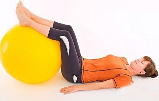 仰卧,双脚放在健身球上,双手掌心贴着地面,收紧腿部和腰腹肌肉。让身体成一条斜线,保持正常呼吸。