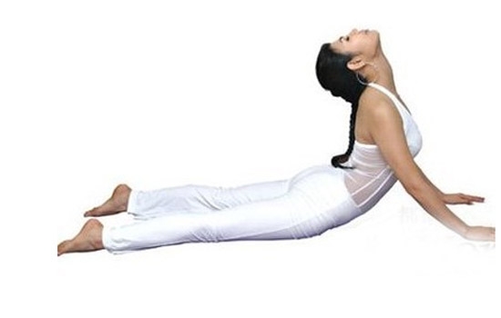 step1:身体俯卧在床上,慢慢用双手撑起身子,手掌张开,头往后仰。