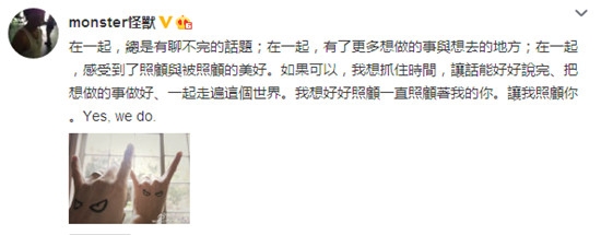 18日下午,五月天怪兽发博宣布婚讯,并大方告白女友阿沚,今年38岁的他将和32岁的女友阿沚在下个月订婚,女方家庭是军人出身,比较保守,因此决定先订婚后结婚,订婚将只邀请亲戚。另外,据悉,女友阿沚是石头老婆的亲妹妹,也是家中最小的女儿,此次两家联姻,可谓是亲上加亲。