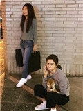 何穗最新街拍,灰色毛衣+墨绿色光泽感半裙,文艺慵懒,少女感十足。马海毛毛衣来自H&M,手提包和粉色毛拖鞋均来自Gucci,半裙来自Tibi 2016